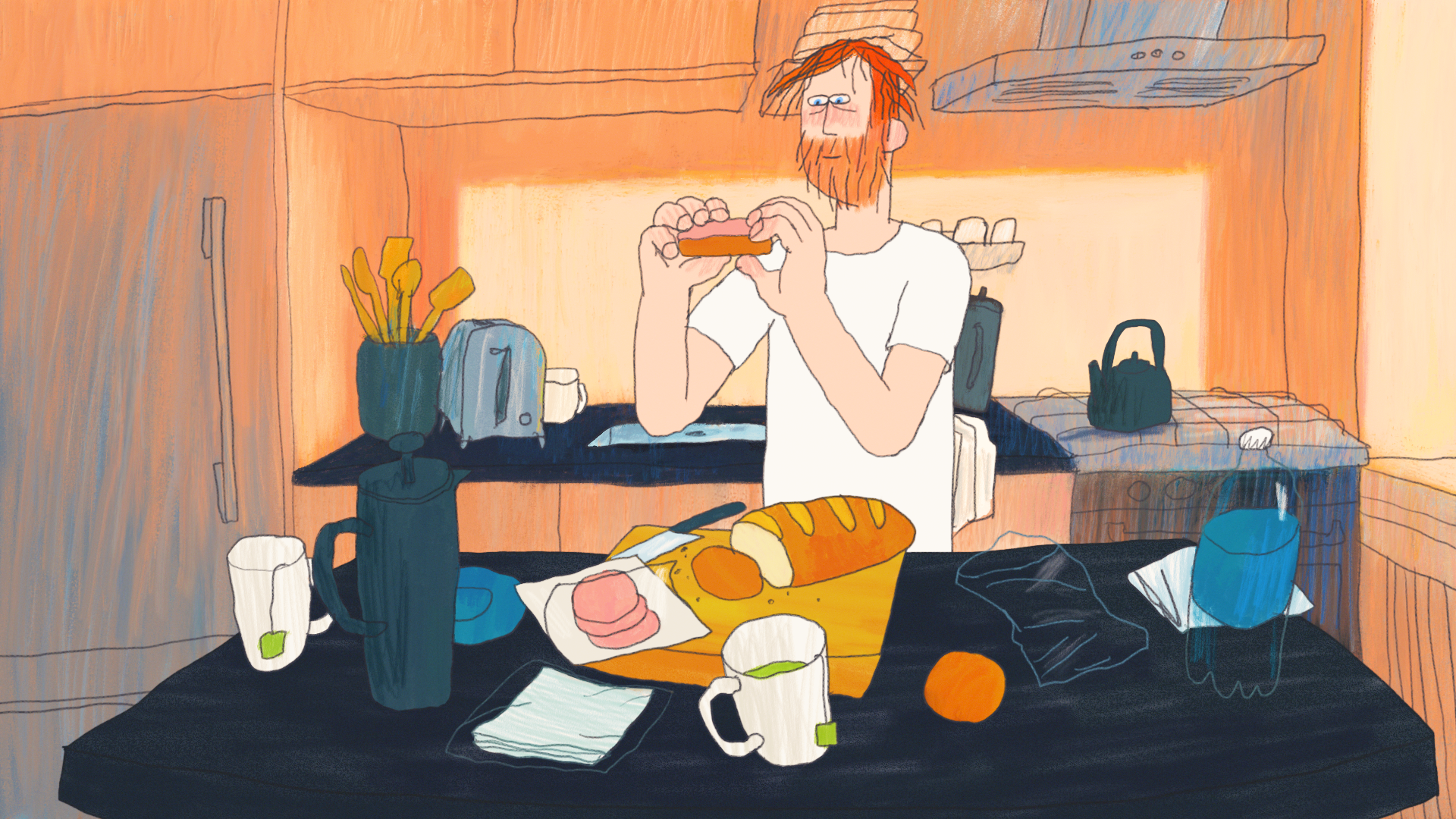 The supermarket is nearing its closing time, and the last customers are queuing for their turn at the fish counter. The agonizing wait offers a chance for existential reflection and a little song.